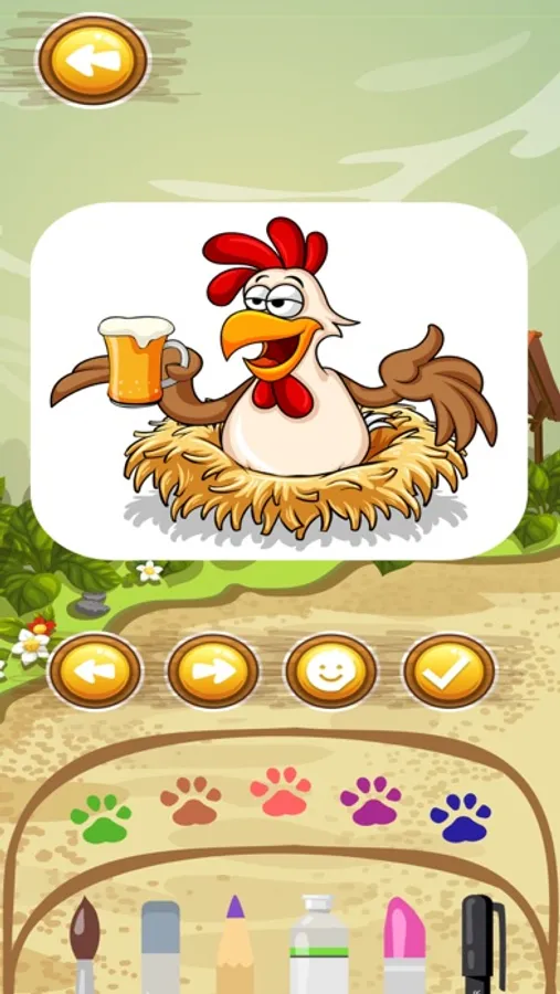 "Funny Chicken Coloring Game & Word Puzzle Game for Kids" is a mobile game that combines the fun of coloring with the challenge of word puzzles. The game features a variety of coloring pages or pictures featuring funny chickens for children to choose from, and offers tools such as brushes, crayons, or markers for kids to use to color the images. In addition to coloring, the game also includes word puzzles that challenge children to find and spell words related to chickens. These puzzles may include word searches, crosswords, or other types of word games that help kids improve their spelling and vocabulary skills. Overall, this game could be a fun and educational way for kids to have a blast while learning about chickens and improving their language skills.