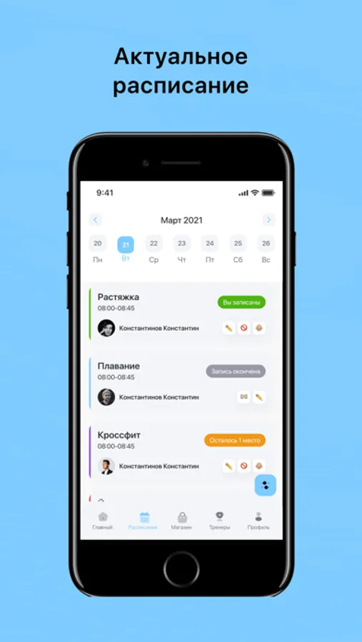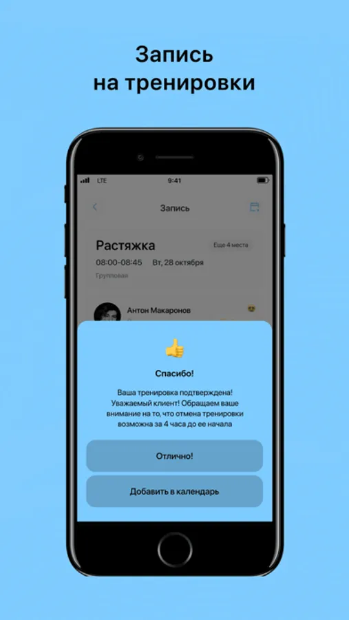 Получать PUSH-уведомления о предстоящей тренировке за 24 часа;