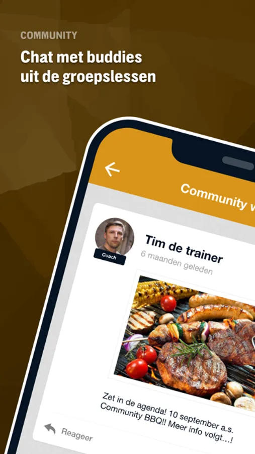 - Houd je trainingprogressies bij en volg je trainingbuddies.