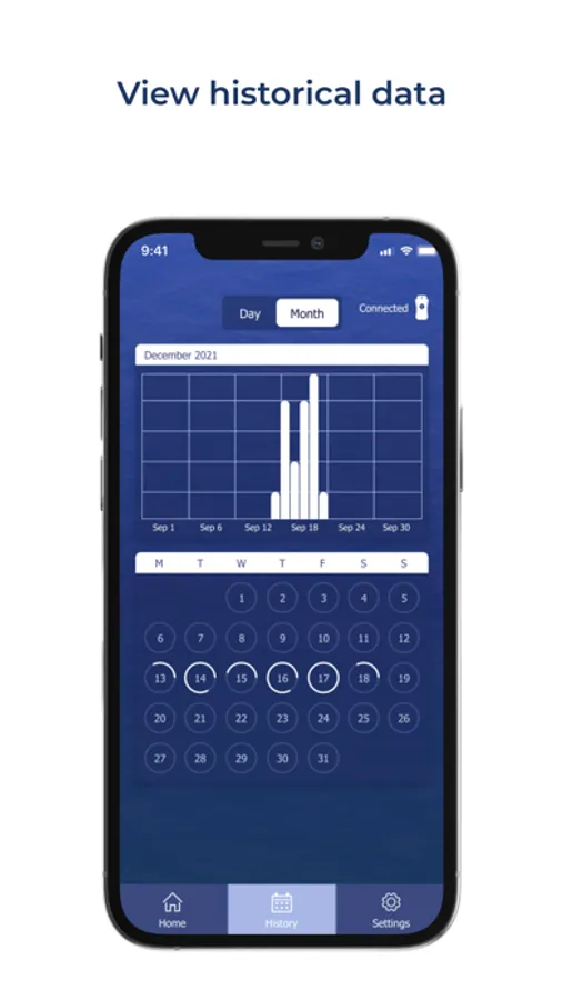 History: Daily Hydration stats are kept in history for you to monitor your hydration goals over time in daily and monthly view