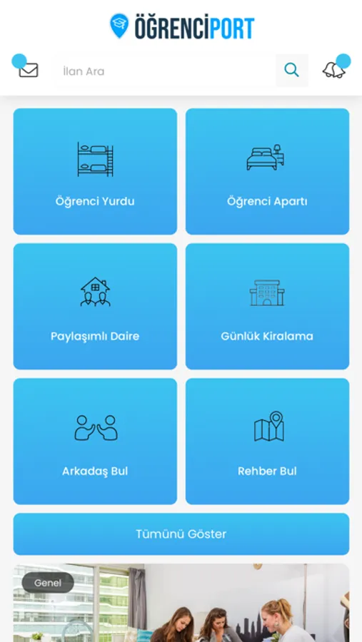 Bulunduğunuz konumu seçerek, o konumdaki bütün yurt, apart ve paylaşımlı dairelere erişim sağlayabilirsiniz.