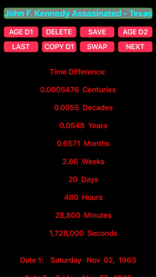 With TimeDelta3 you can check historical dates to aid you in your quest to uncover plausible evidence