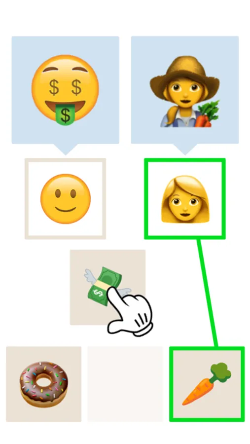 A new imagination game in which you need to select emoji by associations. Think and find the idea of each puzzle. Just tap one by one on the elements from different option complete the puzzle. Or drag to draw a line and connect elements from different options. If you correctly connect all the elements, you pass the level. Harder than you think!
