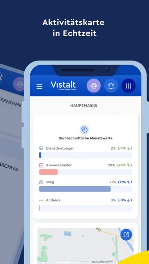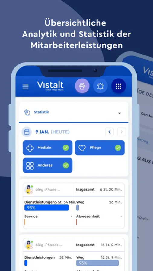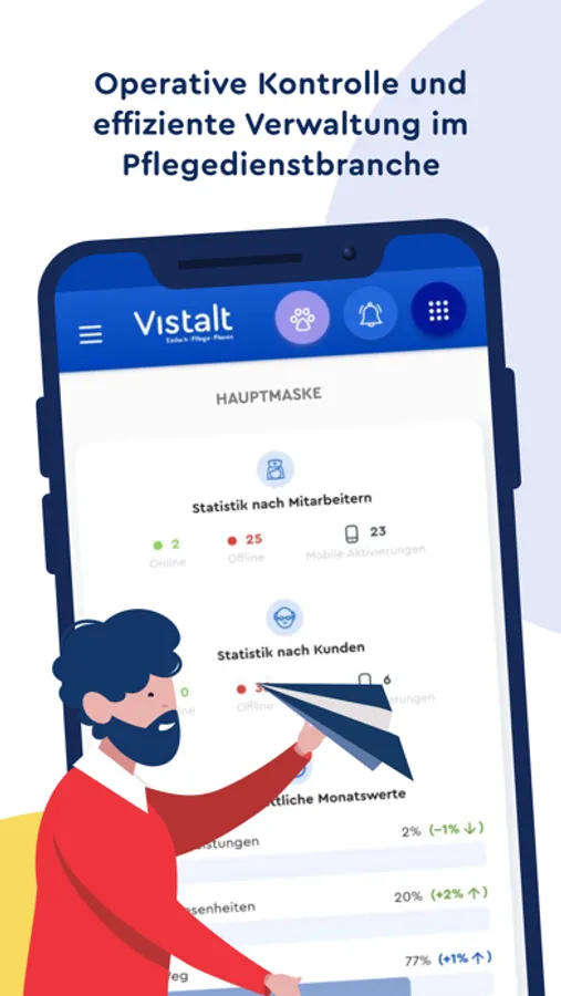 Vistalt 24 Mobile App und webbasierte Lösung Vistalt 24 ist ein Produktivitätswerkzeug für den Arbeitsplatz, das Mitarbeitern und Teams Analysen zur Maximierung von Produktivität und Effizienz bietet. Vistalt 24 Mobile Analytics schafft ein neues Maß an Transparenz und liefert Leistungskennzahlen für alle Aktivitäten während des Arbeitstages, sodass Manager sicher sein können, dass ihre Arbeit erledigt wird und Mitarbeiter sicher sein können, dass ihre Arbeit anerkannt wird. Unser Ziel ist es, Unternehmen in die Lage zu versetzen, datenbasierte Entscheidungen zu treffen, die den Schutz der Privatsphäre der Mitarbeiter unterstützen und gleichzeitig die Verantwortlichkeit bieten, die für flexibles Arbeiten erforderlich ist.