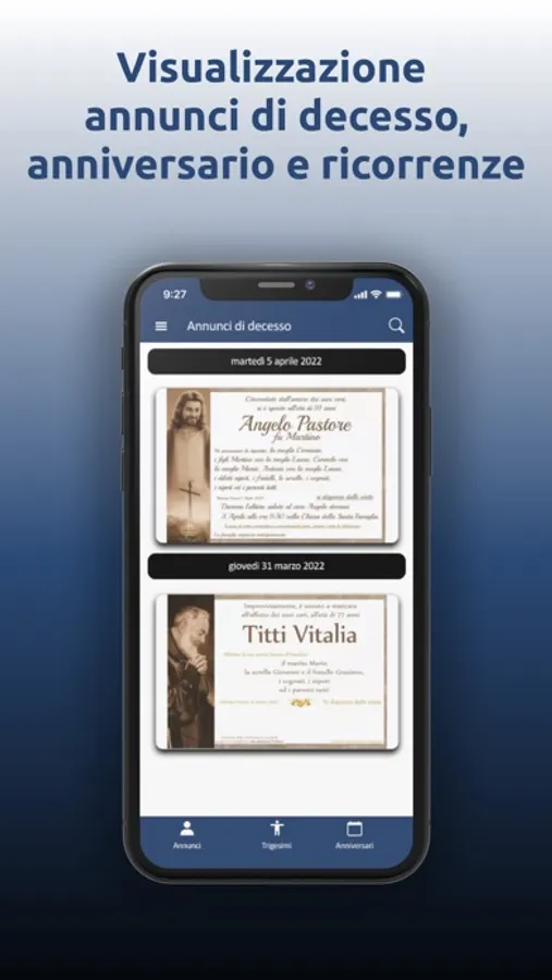 Riceverai notifiche in tempo reale di chi è deceduto oggi e potrai conoscere tutte le informazioni utili riguardo al decesso e alle esequie, con un’ampia possibilità di interazione con le famiglie colpite dal lutto e con la nostra agenzia funebre Tobia, sempre a vostro servizio anche nell’ambito dell’innovazione mediatica e tecnologica!