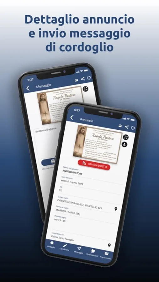 • la geolocalizzazione tramite Google Maps del luogo della veglia, delle esequie e della tumulazione