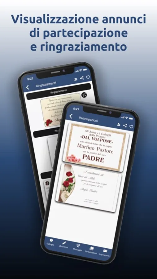 La nostra app è affidabile e seria, vi accompagna virtualmente nel momento del cordoglio, proponendovi una vasta gamma di servizi tra i quali anche una sezione dedicata dove è possibile prendere visione di tutti i nostri partners e mettervi in contatto con loro direttamente dal tuo smartphone e tablet!