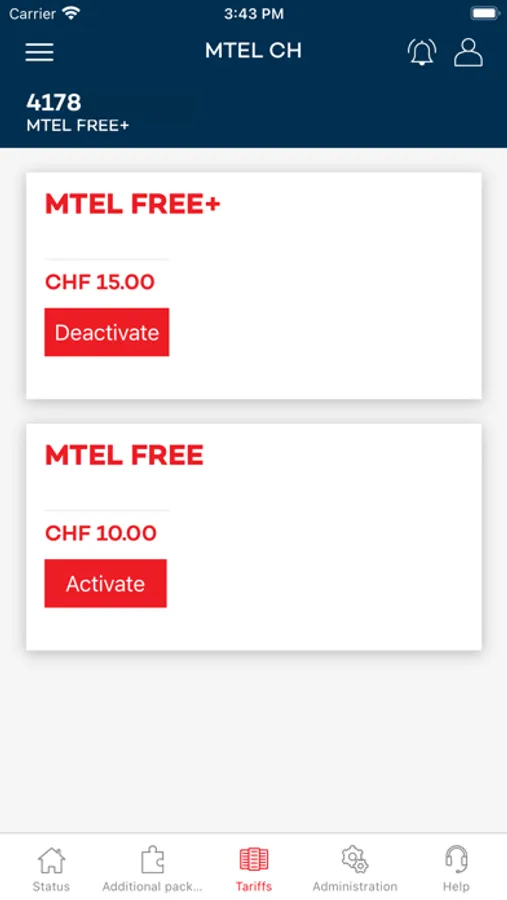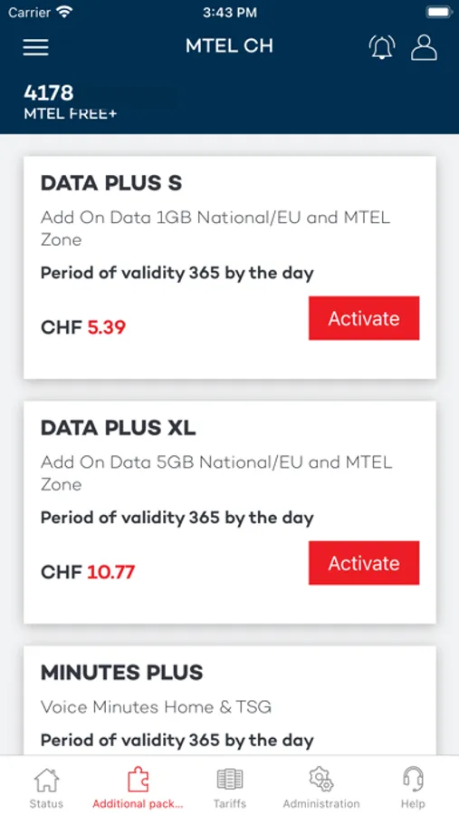- Aktivierung der Tarifpakete