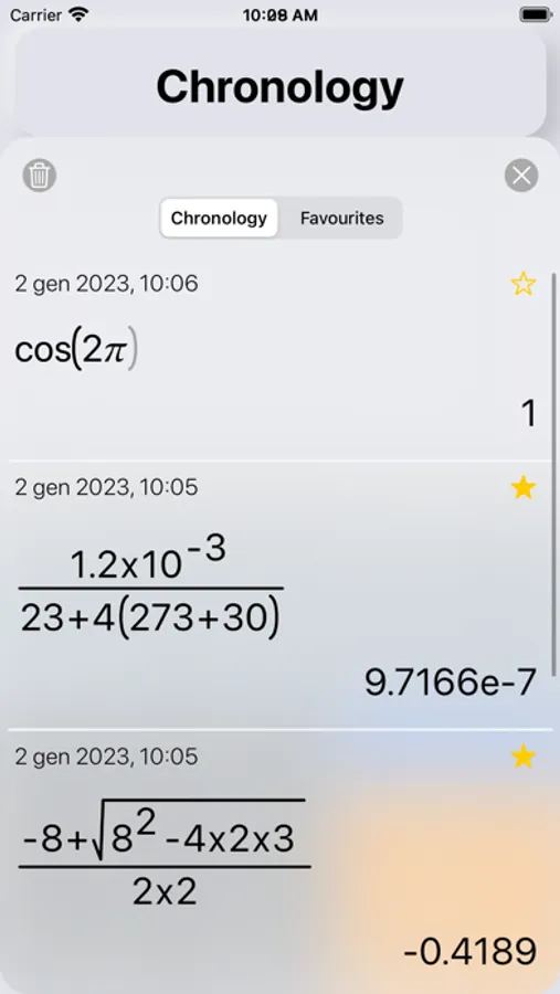 - Chronology! Yes, you can save any calculation automatically in the chronology and filter it with favorites.