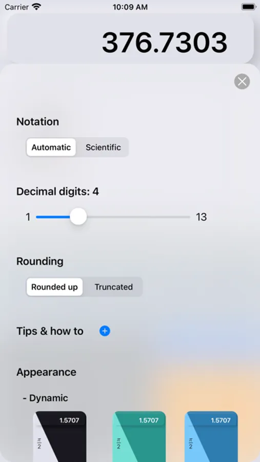 - Hidden feature: if you are in scientific notation, you can swipe over the result to move the decimal separator and change order of magnitude!