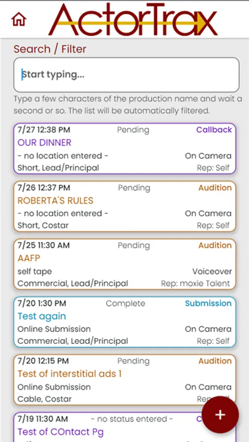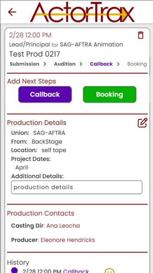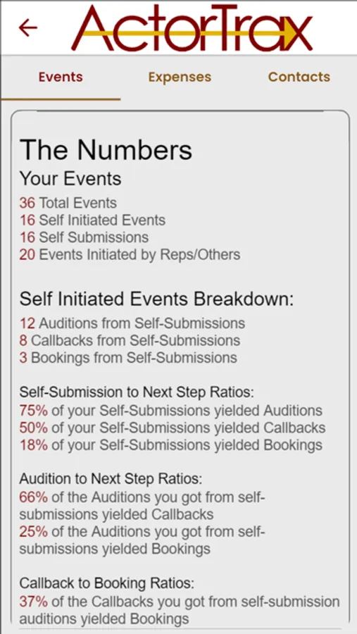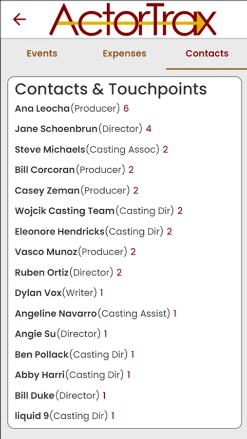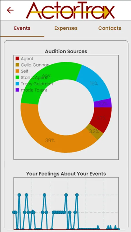 With a few taps, ActorTrax logs your progress from submission to booking, your industry contacts, and your expenses.