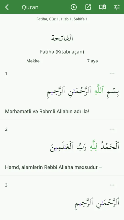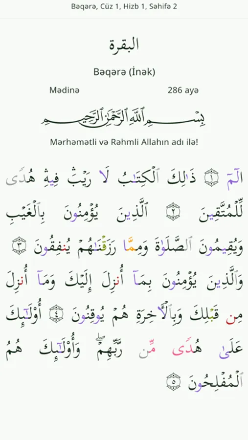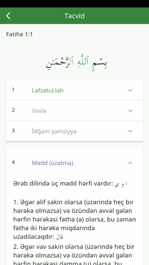 Bu proqramdan Siz Qurani-Kərimi təcvid qaydalarına uyğun oxumağı öyrənmək, həmçinin mənaca tərcüməsi ilə tanış olmaq üçün istifadə edə bilərsiniz. Əlavə olaraq proqramda qarilərin təcvidlərini sözbəsöz işarələmə ilə dinləmək, təcvid əhkamları ilə tanış olmaq, Quranın Mədinə çapını endirib oxumaq mümkündür. Mənaca tərcümə olaraq Əlixan Musayevin tərcüməsi istifadə olunmuşdur.