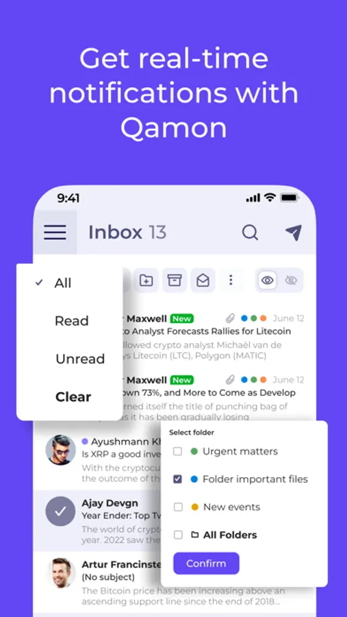 Full email functionality. You can use Qamon the same way you use other email services, but with us, you know your data's safe.