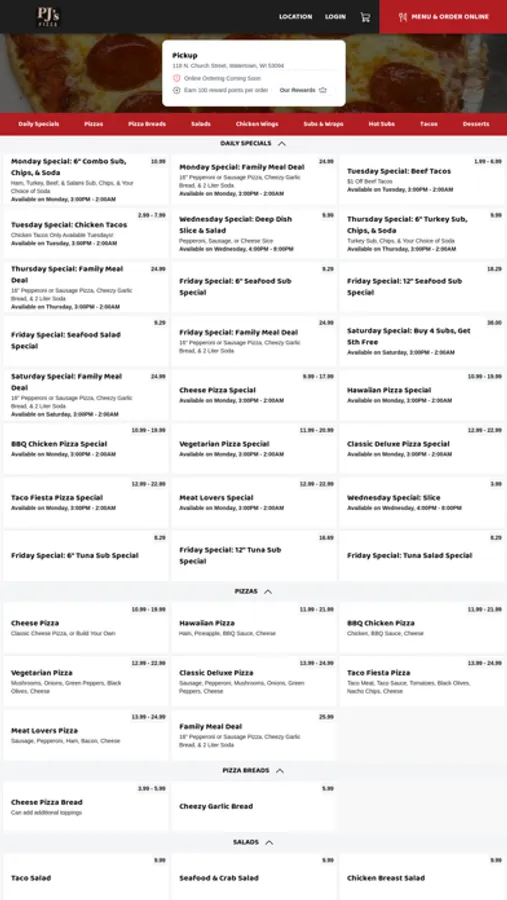 The official mobile app for Pj's Pizza in 118 N. Church Street, Watertown, WI 53094!