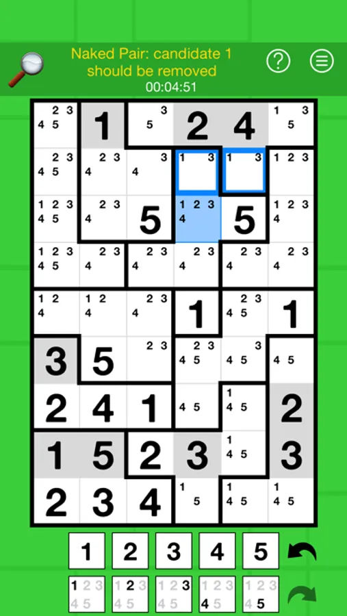 The goal is simple; fill the grid with numbers so that each number appears exactly once in each region and so that neighboring cells do not contain the same number.