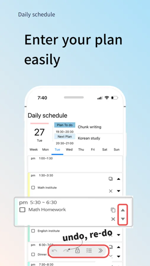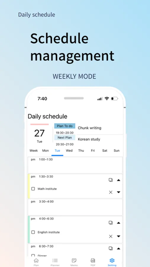 ◦ Daily and weekly timetables can be easily modified and deleted anywhere with one click!