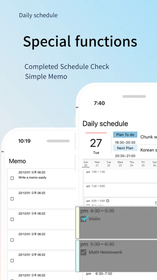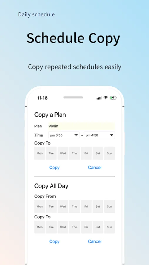 - Set plans, colors, notes, notifications on the 'Select Time First' pop-up screen