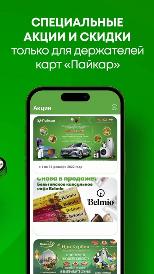 Клубная карта «Пайкар» всегда у вас под рукой! Она всегда доступна в приложении- сканируйте ее на кассе прямо с экрана смартфона.