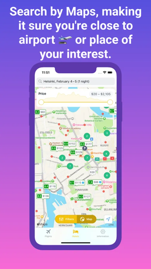 • Search by city, fascination, milestone, or inn, hotel, motel, place name with only one tap