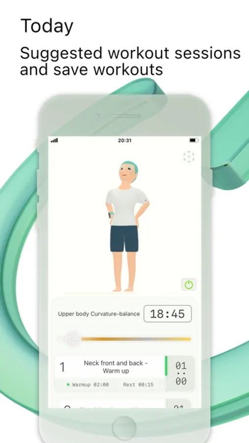 The posture workout plans are organized into 9 workout plans according to body regions with keywords describing the posture characteristics inside the application. Learn the exercises in the plans and sense the various regions of the body.