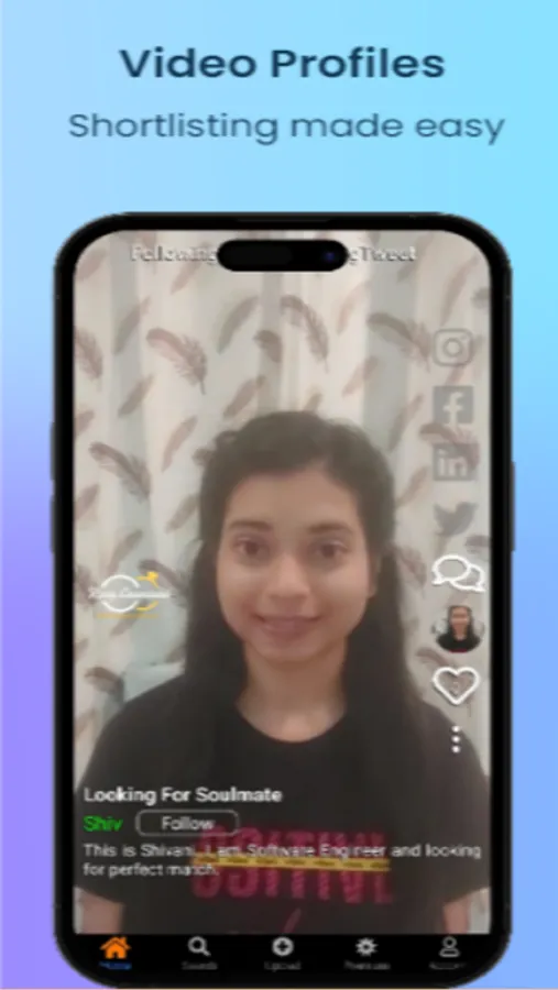 This is modern matrimony app for Indians. It is focused on match making with the help of video profiles. Users can create their video post or image post and share. Users can interact with each other using chat facility.