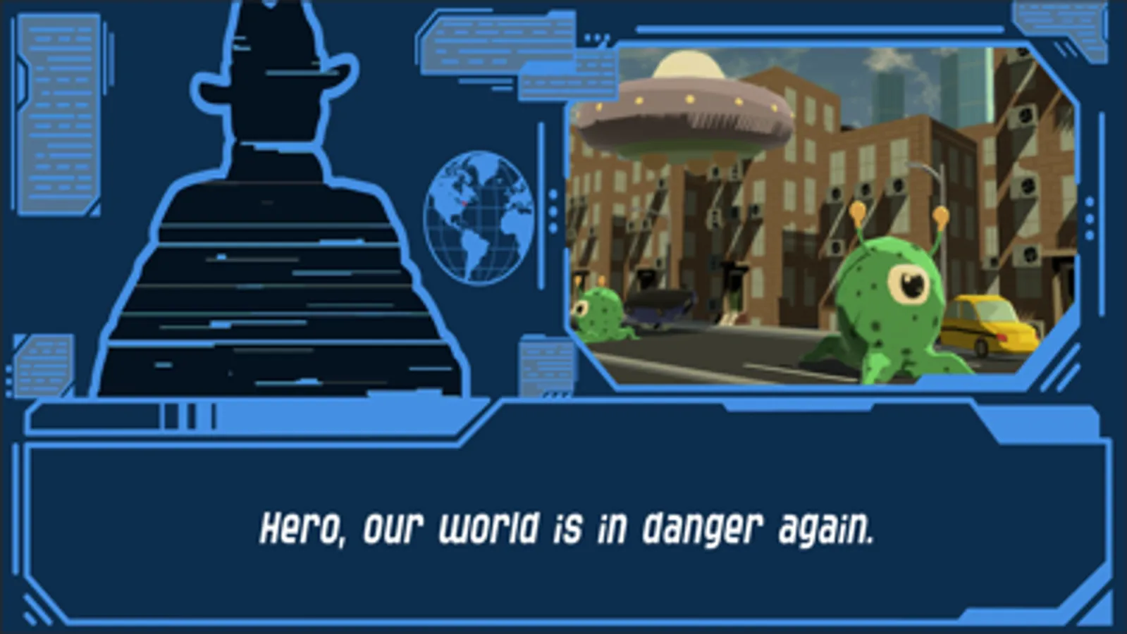 The world is in trouble again Hero! We need your help to defeat the Aliens!