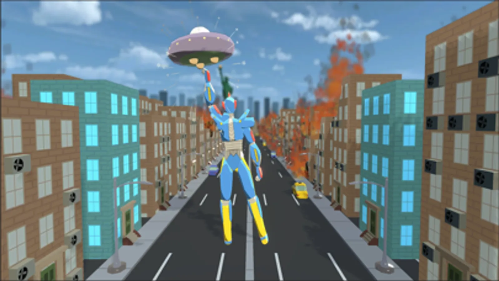 Move your arms and legs around to punch and kick the Aliens to save the city.