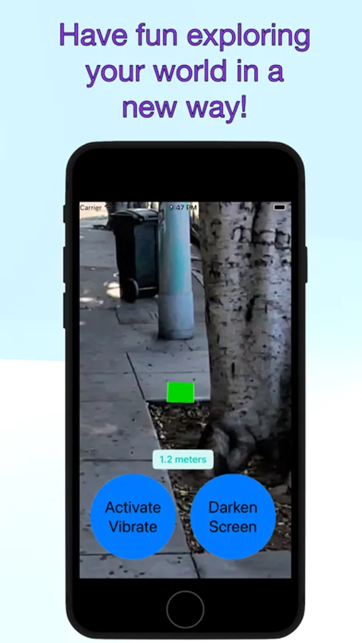 Our innovative app uses augmented reality technology to sense the distance to objects around you and translate that information into a pattern of vibrations. Simply point your phone in front of you and let the vibrations guide you. The closer you get to an object, the more intense the vibrations become.
