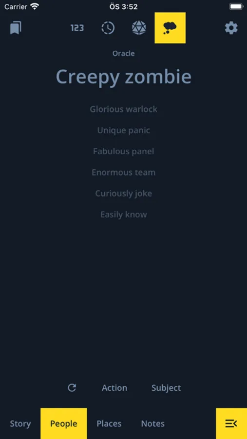* Oracle - generate random words to give you ideas, and random names for your characters