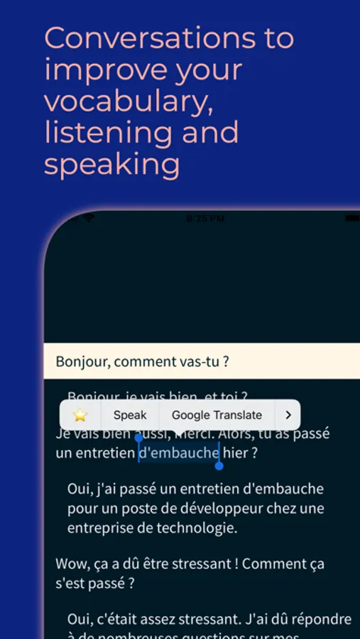 Whether you're just starting out or are an advanced learner, French Conversation Practice is designed to help you improve your French skills in a fun and engaging way. Don't wait any longer – start improving your French today with French Conversation Practice!