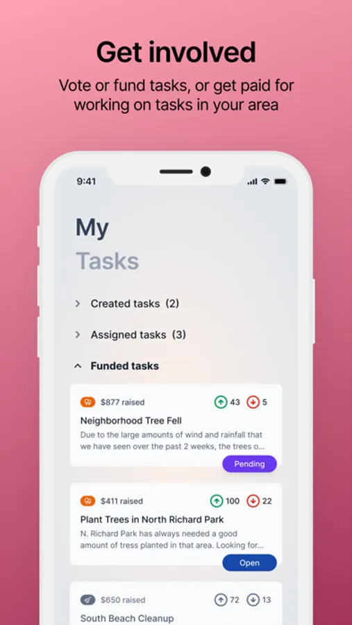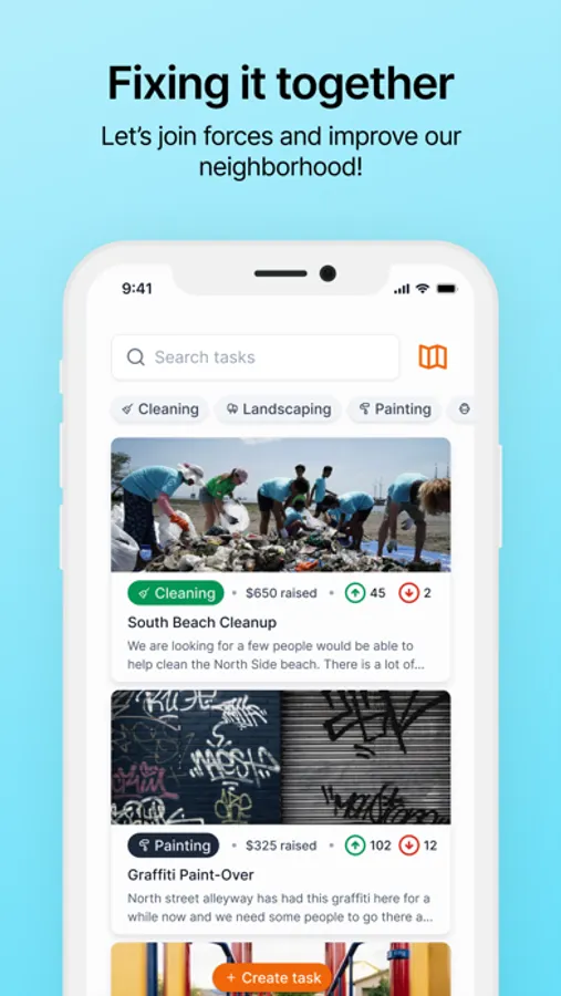 Neighbors will vote on the tasks that matter the most to help prioritize the work to be done, and they can also support a task by adding funding to it. Other neighbors can then decide to work on those tasks and get paid the raised amount.