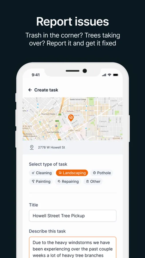 Reporting issues is super easy, just point to where the problem is on a map, enter some basic information and a picture, and you are done!
