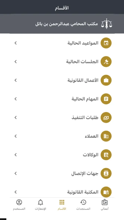 يعد تطبيق مكتب المحامي عبدالرحمن الباتل احد التطبيقات المساعدة في ادارة المكتب من خلال سهولة استخدامه وشمولية ما يحتويه