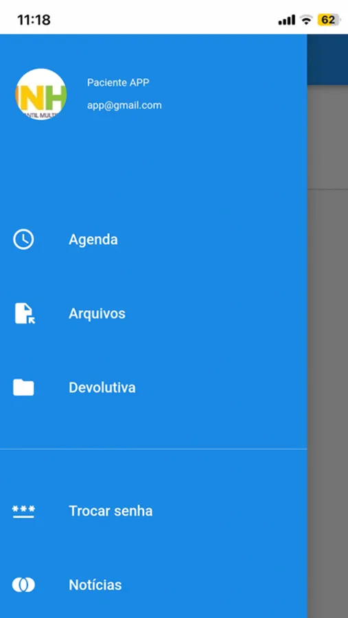 Através dele, o paciente poderá visualizar Noticias disponibilizadas pela clinica, a sua Agenda de atendimentos previsto, Anexos e a Devolutiva Clinica Eletrônica dos Atendimentos.