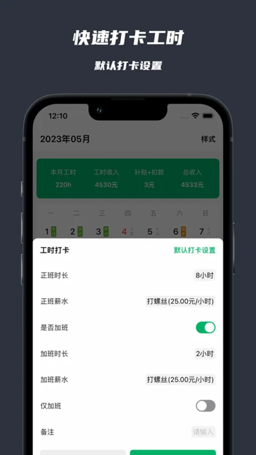 3.固定工时打卡,上下班灵活打卡,自动计算工作时长