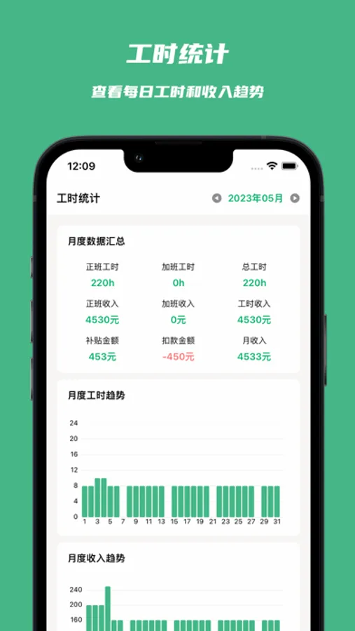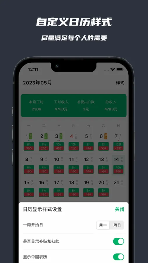 5.支持自定义考勤周期,月度统计、年度统计,自定义时间统计