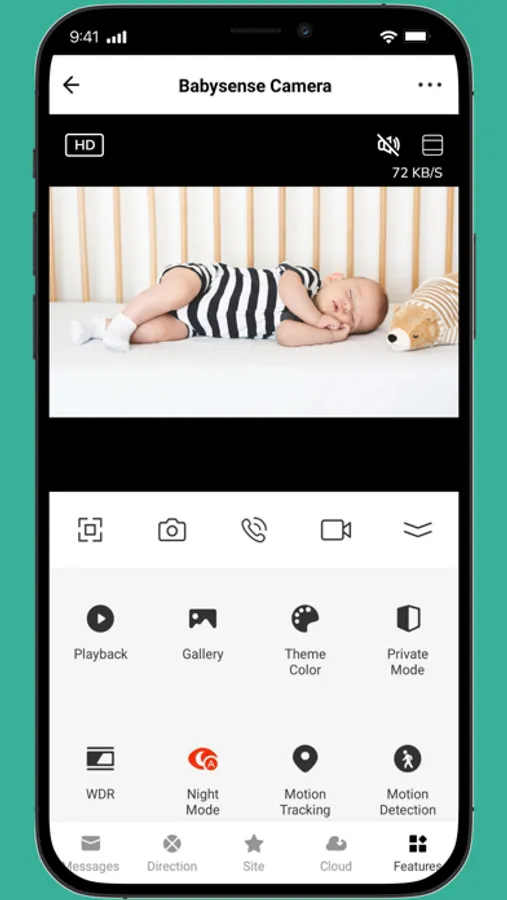 With the BabysenseSee HD app you can monitor your baby in real time, remotely adjust the camera, record, snap photos, play back moments, view in night mode and much more!