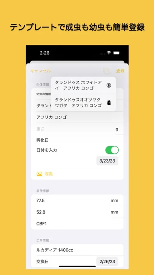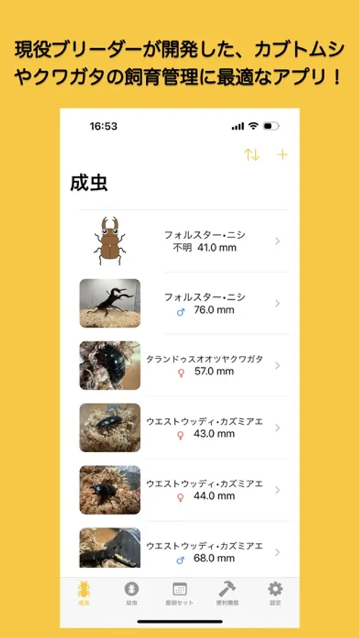 むしログは、現役ブリーダーが開発した、カブトムシやクワガタムシの飼育管理に最適なアプリです。