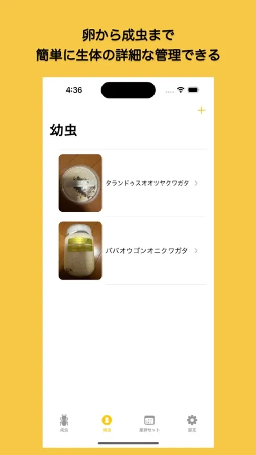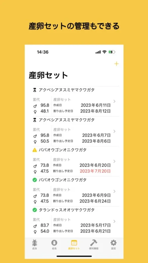 産卵セットから始まり、幼虫、そして成虫の管理をすることができます。さらに、QRコードを活用して、個体の情報を簡単に確認することもできます。