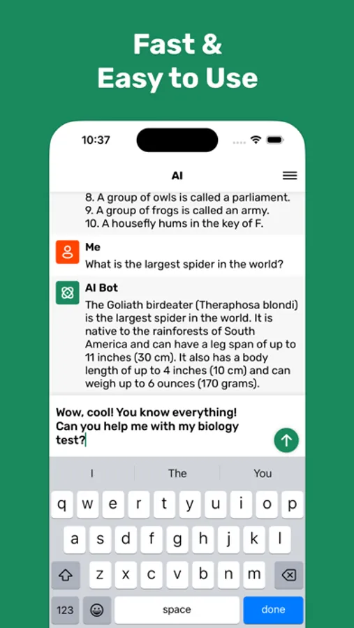 Very fast and advanced AI chat bot. Ask questions, write unique emails, essays, articles and more!
