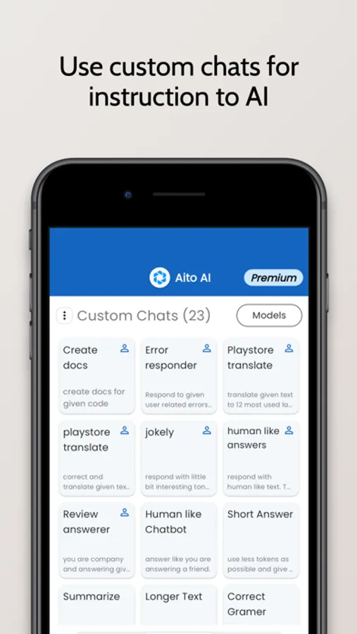 With Aito AI, you can create custom chats tailored to your specific needs, making it your very own AI assistant.