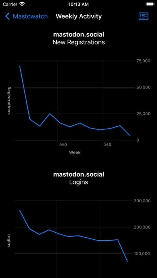 Hi! I’m Mastowatch and I can help you find and inspect Mastodon servers. Whether you're new to Mastodon and just need help finding the perfect instance or you want to look up details and statistics about your favorites, Mastowatch can help you find anything you might need to know about a particular Mastodon server without ever logging in!