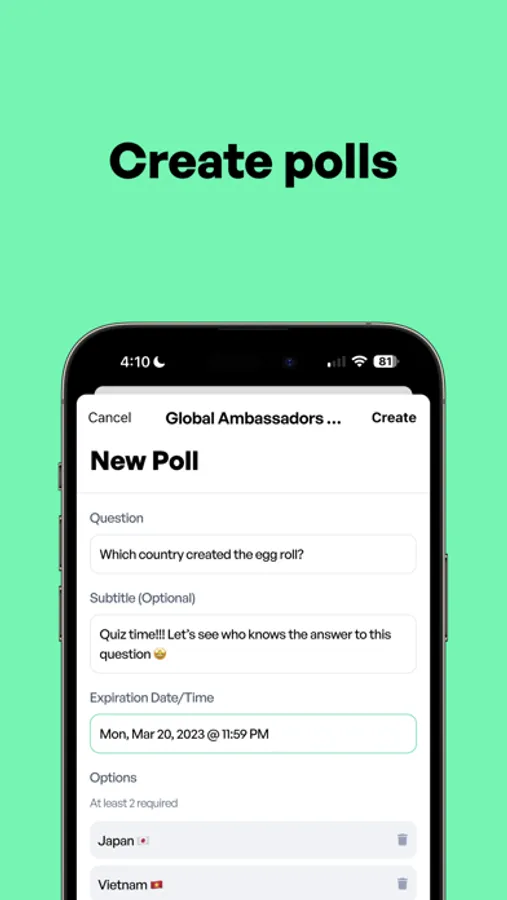- Polls: Get feedback from your members with polls. You can create multiple-choice and view the results in real time.