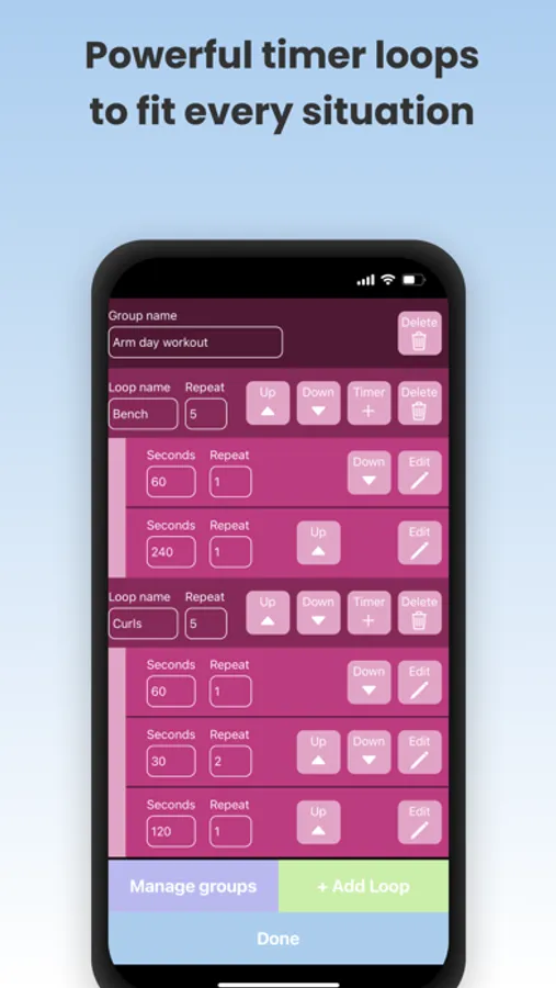 Manage multiple loops of multiple timers that can repeat on a customizable schedule. With Timer Loops, you can create as many timers as you need and customize their duration, label, and repeat frequency.