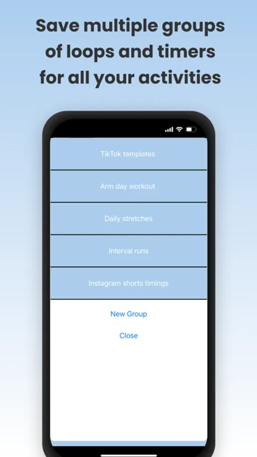 - Multiple timer group management: save different groups of timers for different activities