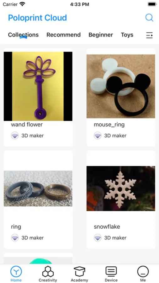 Poloprint Cloud provides a personal model library and online creativity templates. You can design personalized 3D models, print out or save to your personal space.