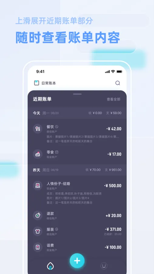After returning home from work every day, organize the day's asset expenses and income, and record the arrival of the accounting book app