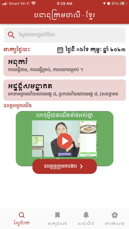 This digital Pāli-Khmer dictionary contains all the original contents of the Dhamma Pada Dictionary of Contemporary Khmer compiled by Preahgrūsirisobhana Kim Tor, first published in 1950.