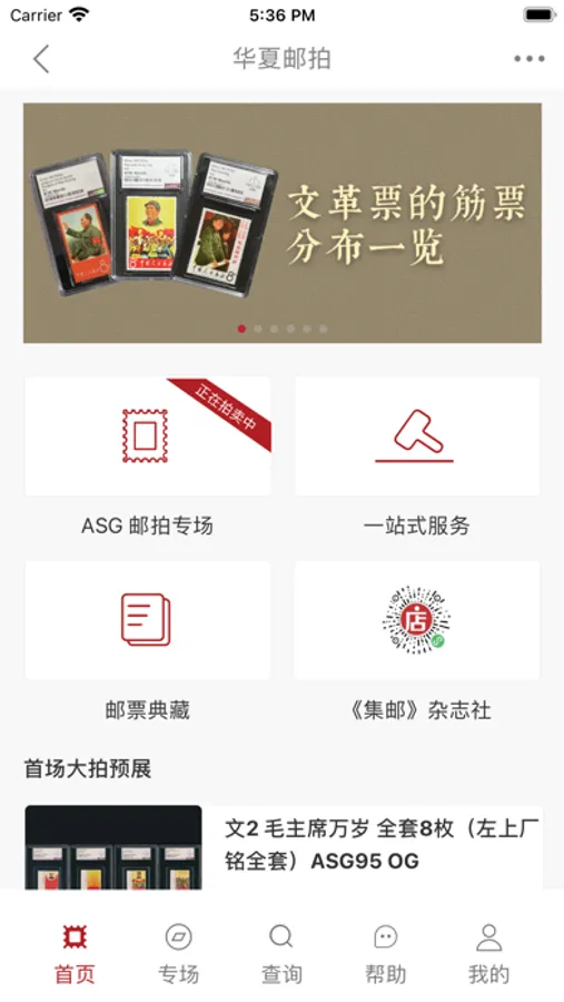 目前网站平台业务主要有三大服务板块“ASG评级邮票拍卖专场”,“实时价格查询”,“动态行情分析”等,更多的扩展全国集邮藏家、邮商的拍卖合作,同时也为藏家提供业内咨询等,不断完善和扩展,目标成为行业内的标杆网站平台。