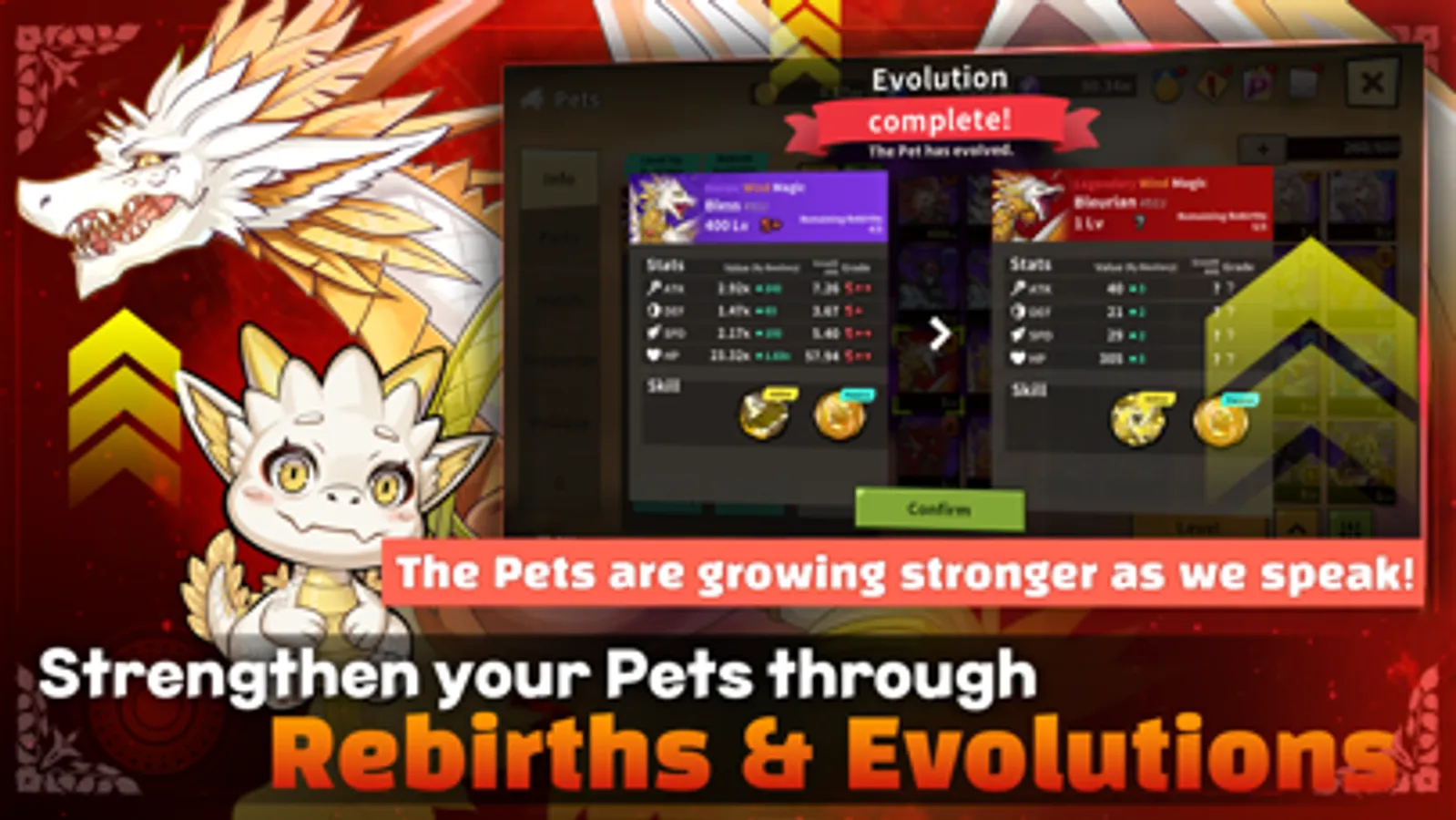 No two Pets are the same in the world of Taming Master! Make your Pets powerful through Rebirths and Evolutions!
